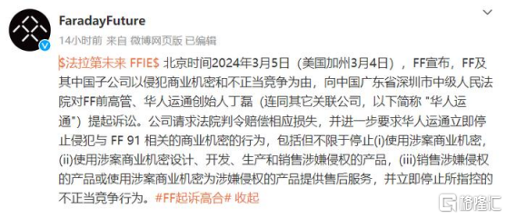 在高合汽车寻求自救之际,贾跃亭的法拉第未来却发起了诉讼,指控高合汽车侵犯了FF的商业机密。
