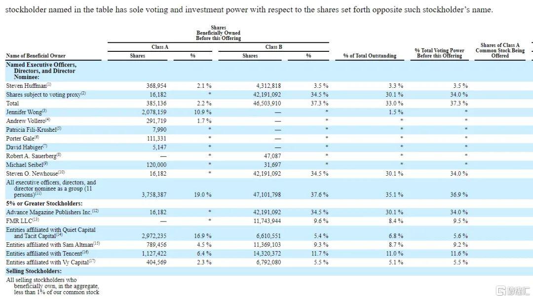 最让人震惊的是,Reddit第三大股东,是Open AI的老大Sam Altman。Sam Altman拥有Reddit的8.7%的股份,包括4.5%的A类股以及9.3%的B类股。