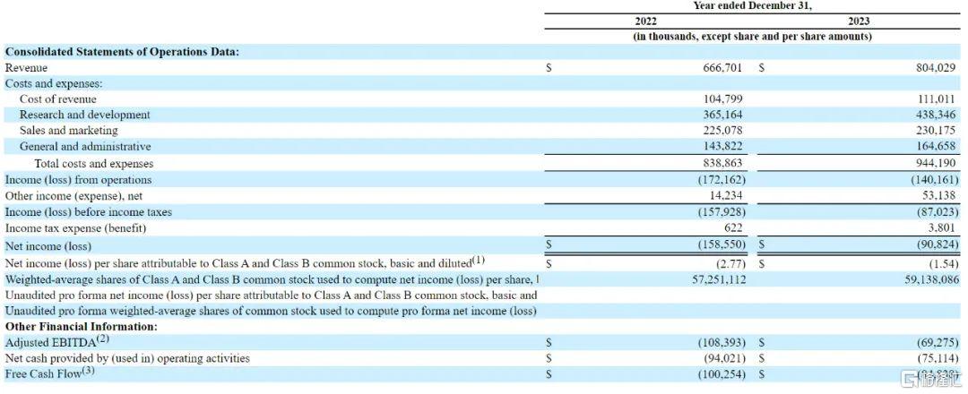 招股书显示,Reddit在2022年、2023年营收分别为6.67亿美元、8.04亿美元;运营亏损分别为1.72亿美元、1.4亿美元;净亏损分别为1.59亿美元、9082万美元。