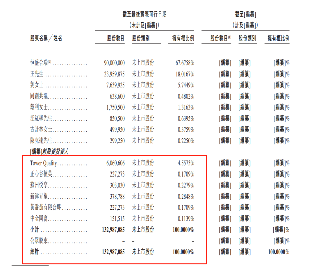 招股书显示,Tower Quality共持有茶百道4.56%股权,正心谷檀英持有0.17%股权,苏州悦享、新津昇望及黄番茄有限合伙分别持有0.23%、0.28%、0.17%。按照上述数据计算,茶百道的估值超过175亿元。